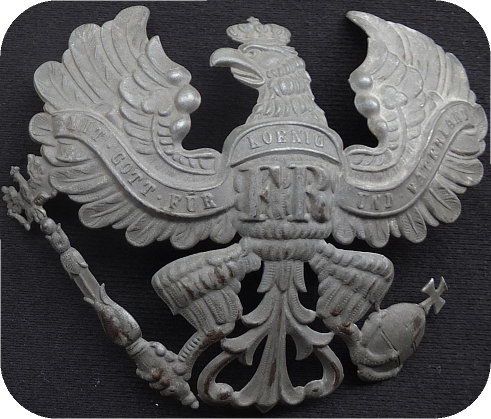 Like the pickelhaube as a whole, the helmet eagles were constantly adjusted in order to always make an attractive and elegant appearance on the evolving helmet. This guide should help to assign the different variants of the Prussian line helmet eagles for enlisted men to a pickelhauben model on the basis of its individual characteristics.