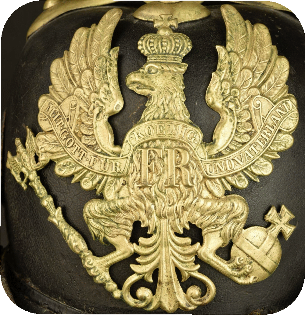 Unfortunately, this guide can only be of rough help. We live in an overflow society today and dump things far too quickly. A repair or a retrofit is often considered too expensive or nobody even thinks about it. However, people living in those days were very economical, the manufactured equipment had to endure a longer period of use and parts were also modified. Therefore, the introduction date of a new helmet model cannot be considered absolute, but was rather a floating process. Variations in the appearance of uniforms were expressly tolerated for a generous transition period. There was often just a uniformity provision for a specific group, such as a battalion. Thus, if there were not enough helmets or helmet components to uniformly outfit that defined group, then modernization was on hold until the parts were available. Also, if a helmet or its components were still in good condition after the end of its defined wearing time, then it could also happen that the wearing time was extended. For example, I have seen a helmet eagle M1842 with soldered banner and the fastening straps of a M1867, or also a helmet eagle M1871 with the wire loops as with the M1895