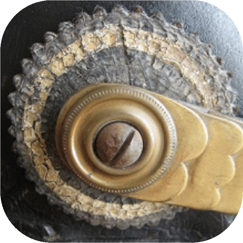 - Issue helmets and „Ersatz“ helmets: Older officer’s cockades were adapted similarly to the 1891 cockades for enlisted men. In 1915, those cockades can still be found on the helmets. The different diameters of 50 mm or 48 mm were probably too insignificant, which is why well-preserved cockades of the larger variant remained in use to the last.