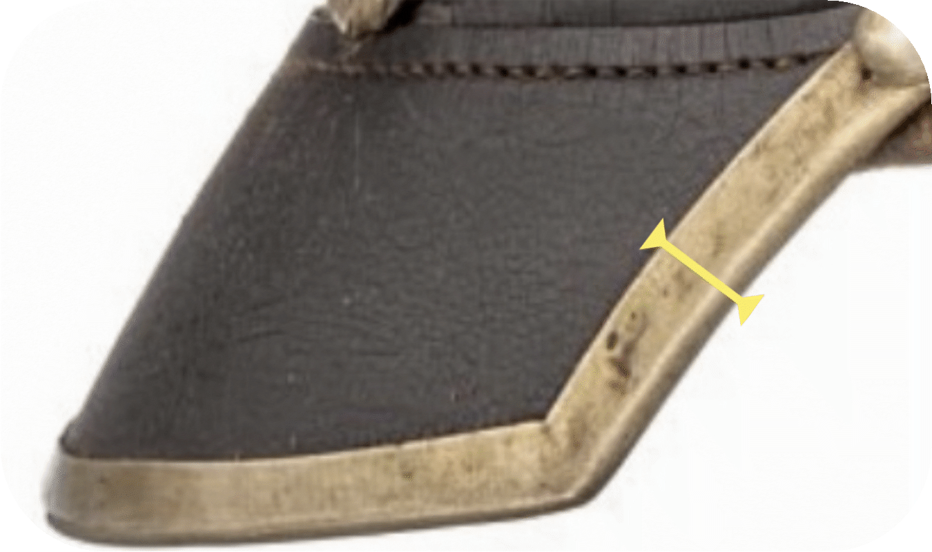 - The visor trimm around the edge of the front visor was smaller and rounder than on the enlisted helmets, with a maximum width of 0.6 cm. For enlisted men, it was more angular and 0.7 to 1.0 cm wide (cf. Figs. 5 and 6).