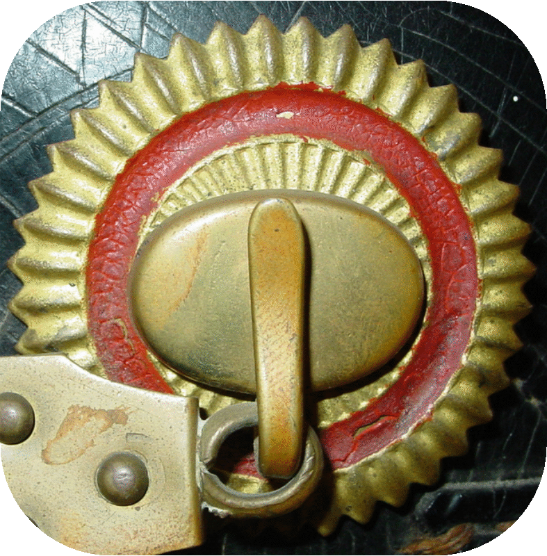 - After 1887 (Cavalry, Artillery and Train from 1894) almost only the officers wore chinscales on their helmets. Among the enlisted men, only the Guard infantry and the Grenadier regiments still wore the chinscales for normal service. The other enlisted men wore them only on parade or garrison duty until 1915. The rosettes for infantry enlisted men's helmets were first replaced by a hook and thorn buckle attachment (Fig. 8), and from 1891 (cavalry, artillery and train from 1894) by the M91 attachment system (Fig. 9). Officers retained the split pin rosettes on their helmets until the introduction of the M15. After that, the M91 attachment for the chinscales was also introduced for officers, but the M91 buttons were covered with a cover in the design of the split-pin rosettes.