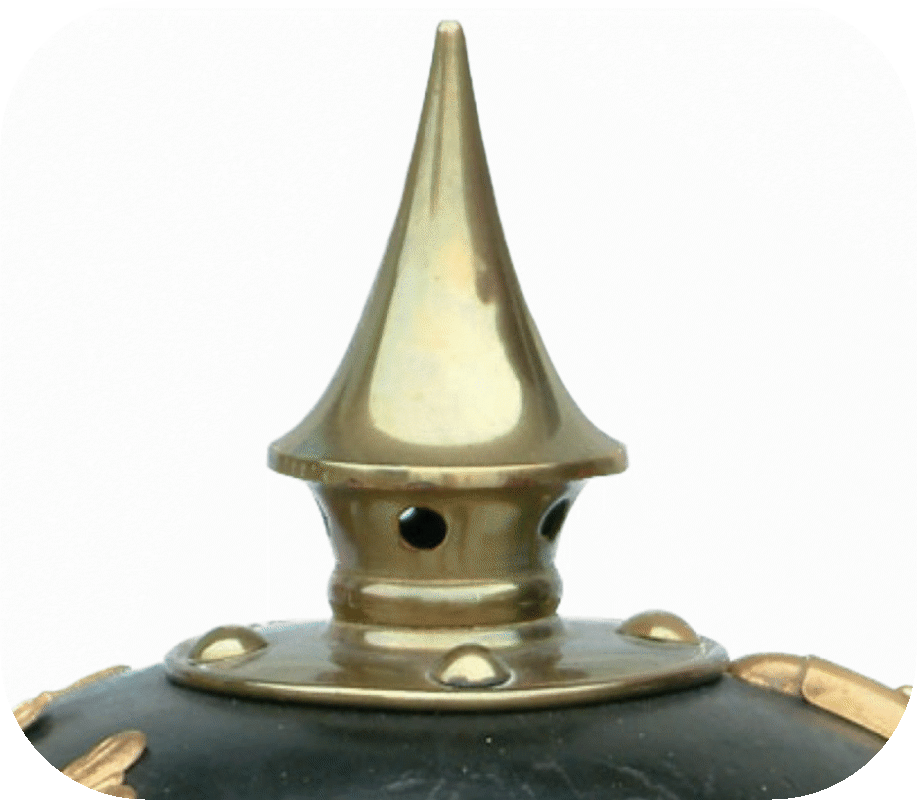 - The neck of the spike on the spikebase had only 2 ventilation holes and was decorated with a more elaborate pearl ring. On enlisted men's pickelhauben, the pearl ring was teardrop-shaped at first (Fig. 2), but from the M1887 helmet on, it was just a circumferential bulge (Fig. 3).