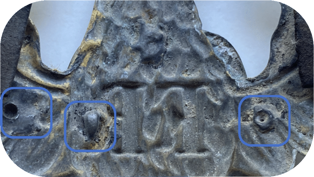 - Gibt es Hinweise ob ein Helmadler gegossen wurde (z. B. kleine Bläschen)?