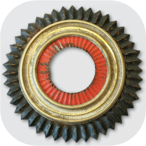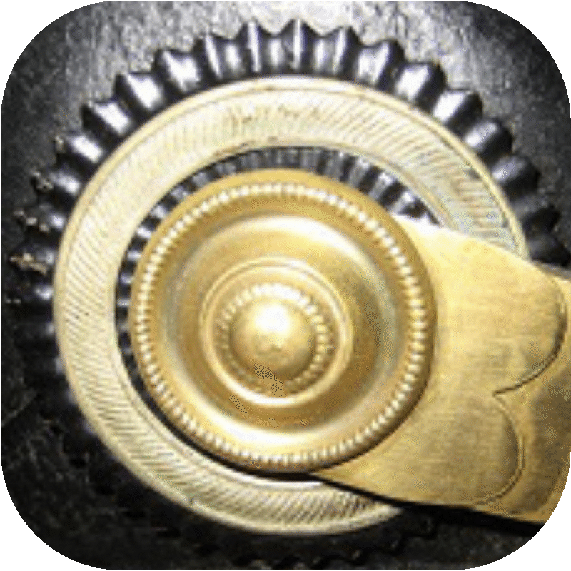 - Officers: Sergeants and officers ranks also wore a leather cockade with a diameter of 70 - 75 mm, but instead of the painted white ring of the enlisted cockade, it had a silver-plated affixed metal ring decorated with a diagonal hatching embossing (Fig. 2). This makes the ring look similar to a cord, which was popularly used as a decoration for various objects at that time.