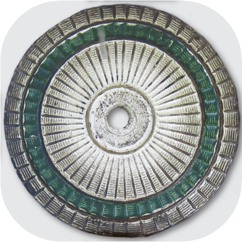 - Saxon cockades had a diameter of only 47 mm as early as 1867. They were one-piece white cockades made of thin sheet metal with a smooth edge. A narrow ripple pattern was stamped on the disk and about 5 - 6 mm from the rim was stamped an approximately 5 mm wide and somewhat recessed green painted ring. Starting in 1895, "V" shaped cutouts were prescribed on the mounting hole (Fig. 21 left). For officers, the disk was silver and the ring was enameled. After 1895, the Saxon officer's cockades measured 55 mm. Rarely, and contrary to the regulation, enlisted men’s and officer's cockades of Prussian style, with the serrated edge, can also be found on Saxon helmets (probably from wartime).