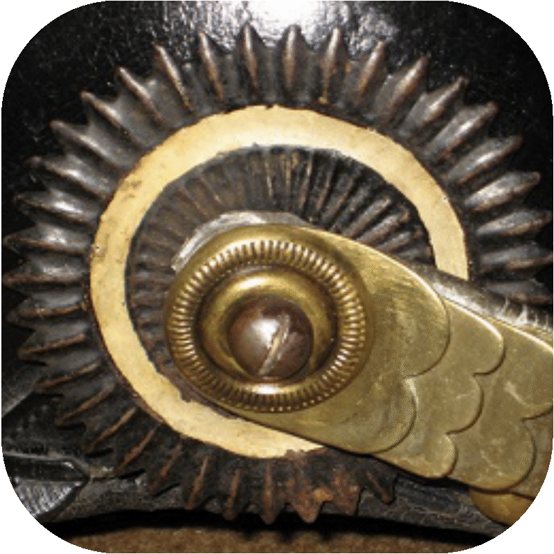 - Officers: Although the lower helmet M95 was also introduced for officers, the officer cockade was not changed. It still had a diameter of 55 mm. However, in the draft of the clothing regulation for officers of 1895, an officer's cockade made of blank leather was listed as well. In the final version of the 1896 clothing regulation for officers, however, a metal cockade was again prescribed. The 1899 version, on the other hand, only included a size specification of 55 mm, without naming a material. So if a leather 55 mm officer's cockade were found on an M95 officer's helmet, it would be extremely rare, but may be original.