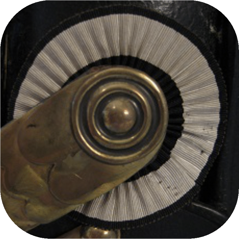 - Issue helmets and „Ersatz“ helmets: Older officer’s cockades were adapted similarly to the 1891 cockades for enlisted men. In 1915, those cockades can still be found on the helmets. The different diameters of 50 mm or 48 mm were probably too insignificant, which is why well-preserved cockades of the larger variant remained in use to the last.