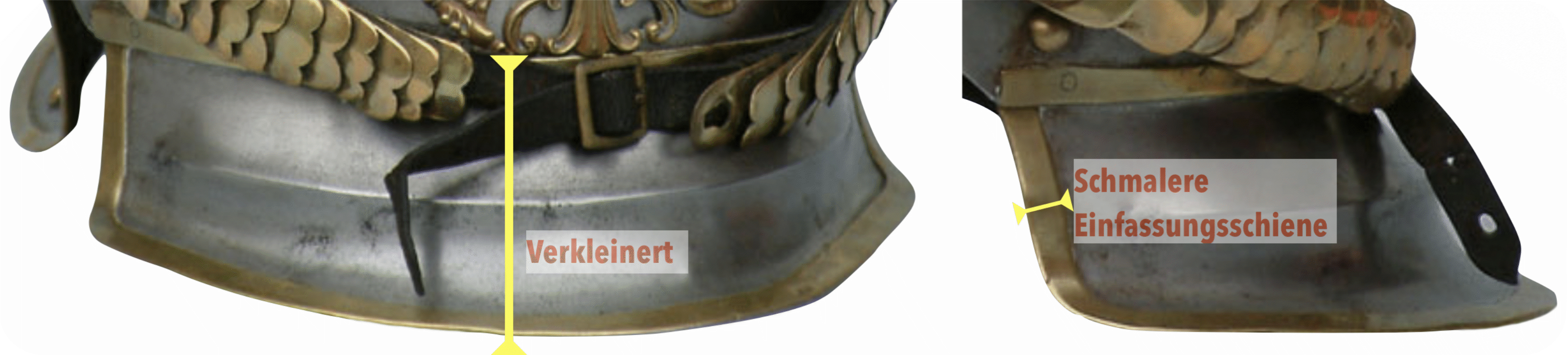 - Mit der geringeren Höhe des Helmes wurden auch kleinere Kokarden eingeführt, die nun einen Durchmesser von 6,0 - 6,5 cm hatten.